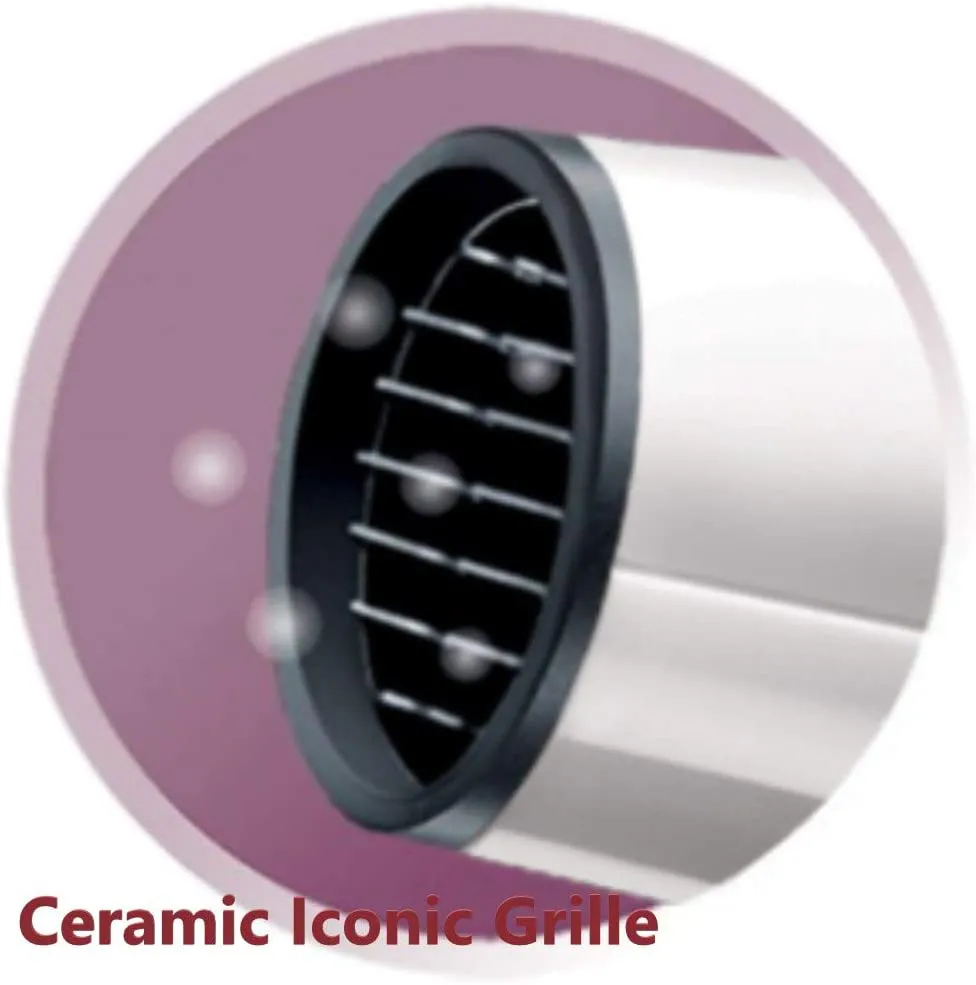 La griglia rivestita in ceramica ionica assicura una distribuzione uniforme del calore e riduce l’effetto crespo, mentre il concentratore e il diffusore inclusi permettono di personalizzare lo styling con precisione. Il dispositivo offre 3 livelli di temperatura e 2 velocità, oltre alla funzione aria fredda per fissare l’acconciatura.